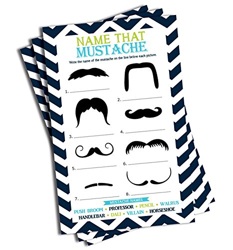 50 Name the Mustache Game Sheets Professionally printed on high quality, Premium paper for easy writing with pens, pencils or anything you choose! Deep, Rich, Vibrant Colors on these add color to your party and Tables Includes Answer Key Each sheet is generously sized to approx. 8.35" high x 5.35" wide. Made in USA.