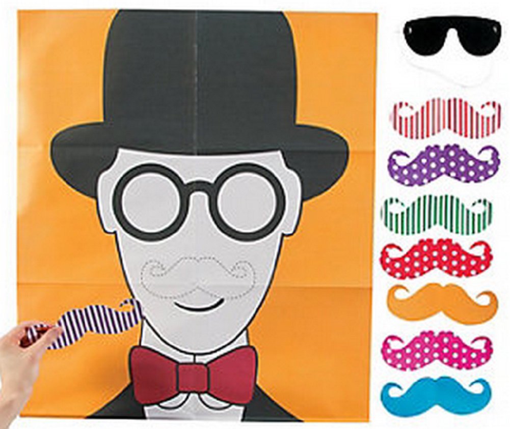 I mustache you to have lots of fun! Stick the mustache to the man! Includes (1) vinyl game board (36" x 22") and (10) mustache decals. Simply apply to wall (or most smooth, flat surfaces). Made of heavy-duty vinyl.