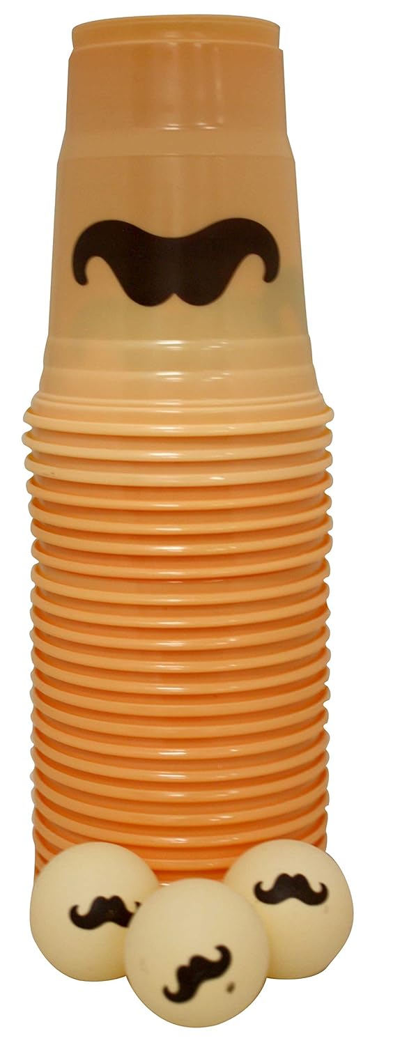 Mustache Beer Pong Pack cups and balls 24 cups - 3 balls